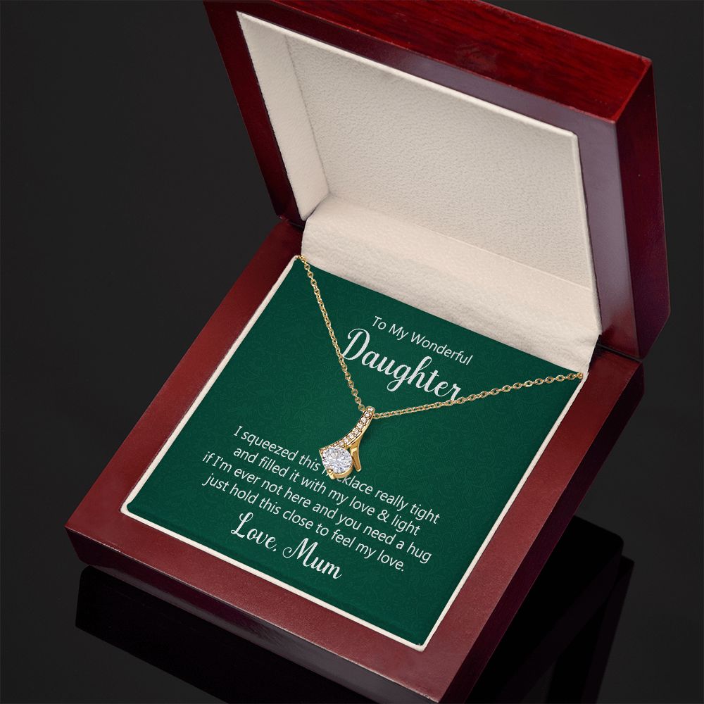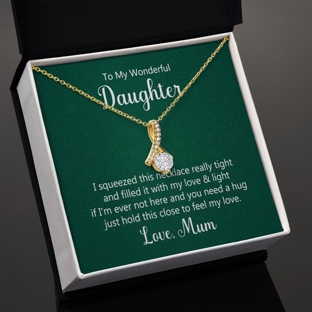 Imagine her reaction when she opens this stunning gift! The Alluring Beauty necklace features a petite ribbon shaped pendant that is sure to dazzle your special someone. Whether it's a birthday or anniversary, make sure to get her a gift she will love for years to come.