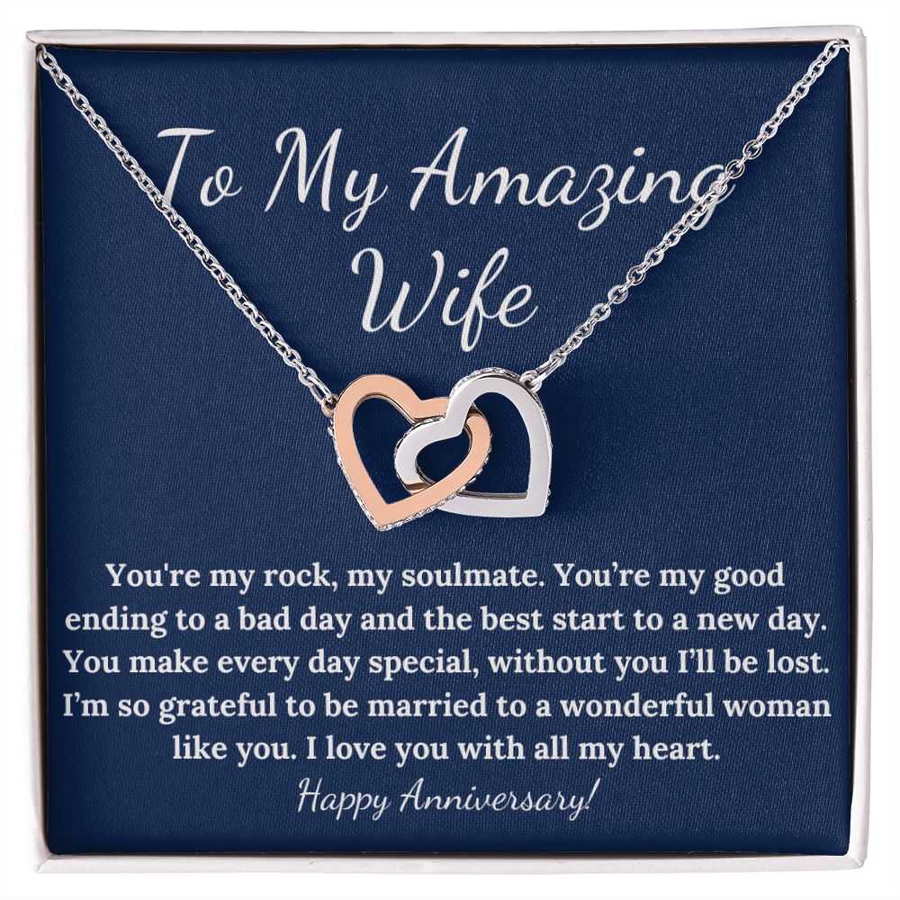 Give her the gift that symbolizes your never-ending love. Featuring two lovely hearts embellished with cubic zirconia crystals, this Interlocking Hearts necklace is the perfect accessory for everyday wear. Whether it's a memorable anniversary or a special birthday, make sure to dazzle your special someone by gifting them this stunning necklace.