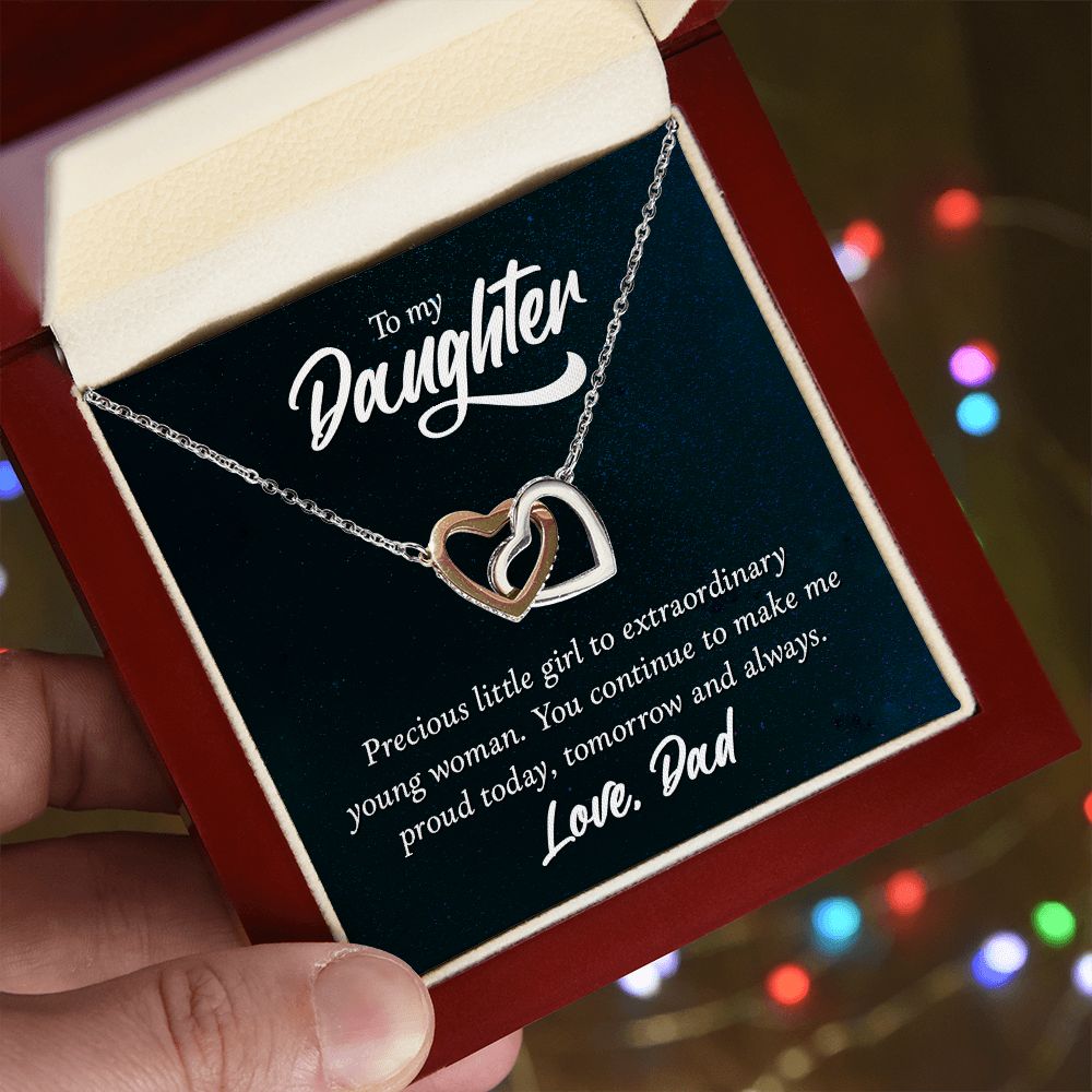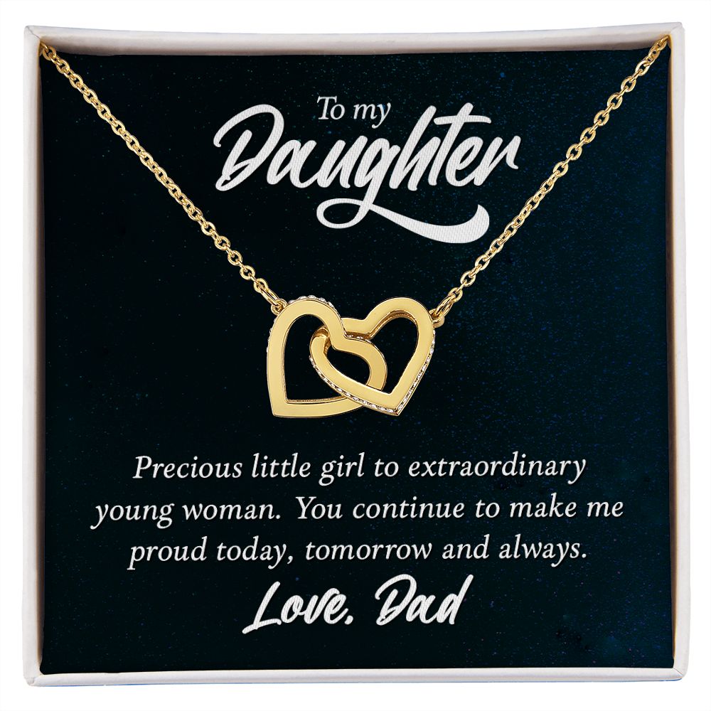 To my Daughter, Love Dad, heart Pendant Necklace Gift Message Card