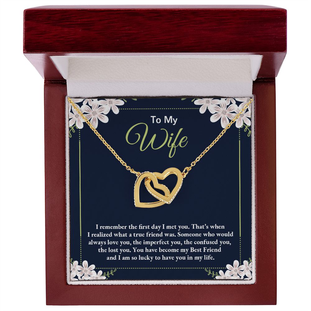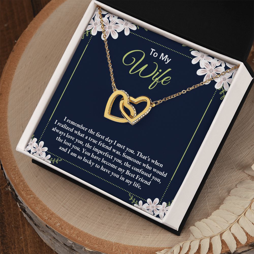 Give her the gift that symbolizes your never-ending love. Featuring two lovely hearts embellished with cubic zirconia crystals, this Interlocking Hearts necklace is the perfect accessory for everyday wear. Whether it's a memorable anniversary or a special birthday, make sure to dazzle your special someone by gifting them this stunning necklace.
